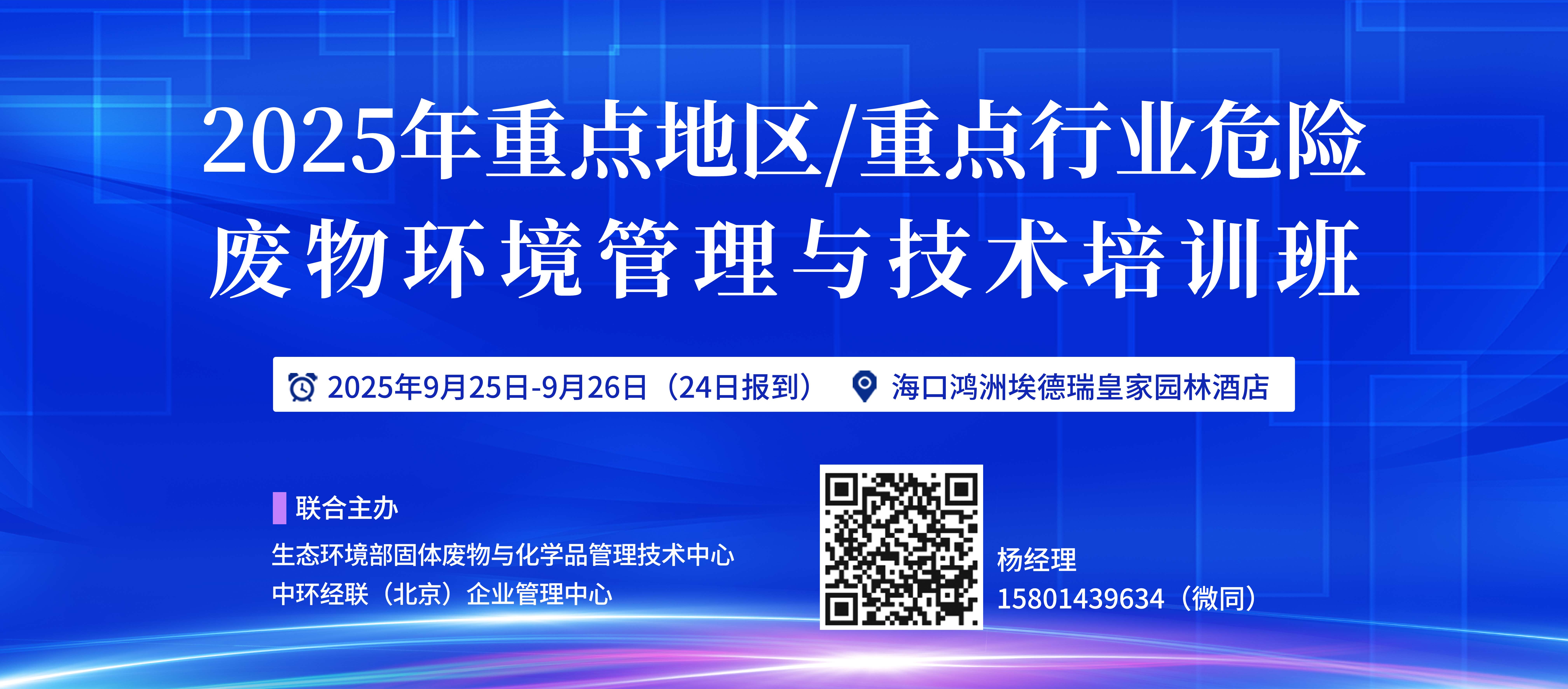 • 【9月·海口】2025年重點(diǎn)地區(qū)/重點(diǎn)行業(yè)危險(xiǎn)廢物環(huán)境管理與技術(shù)培訓(xùn)班 重磅來襲!
