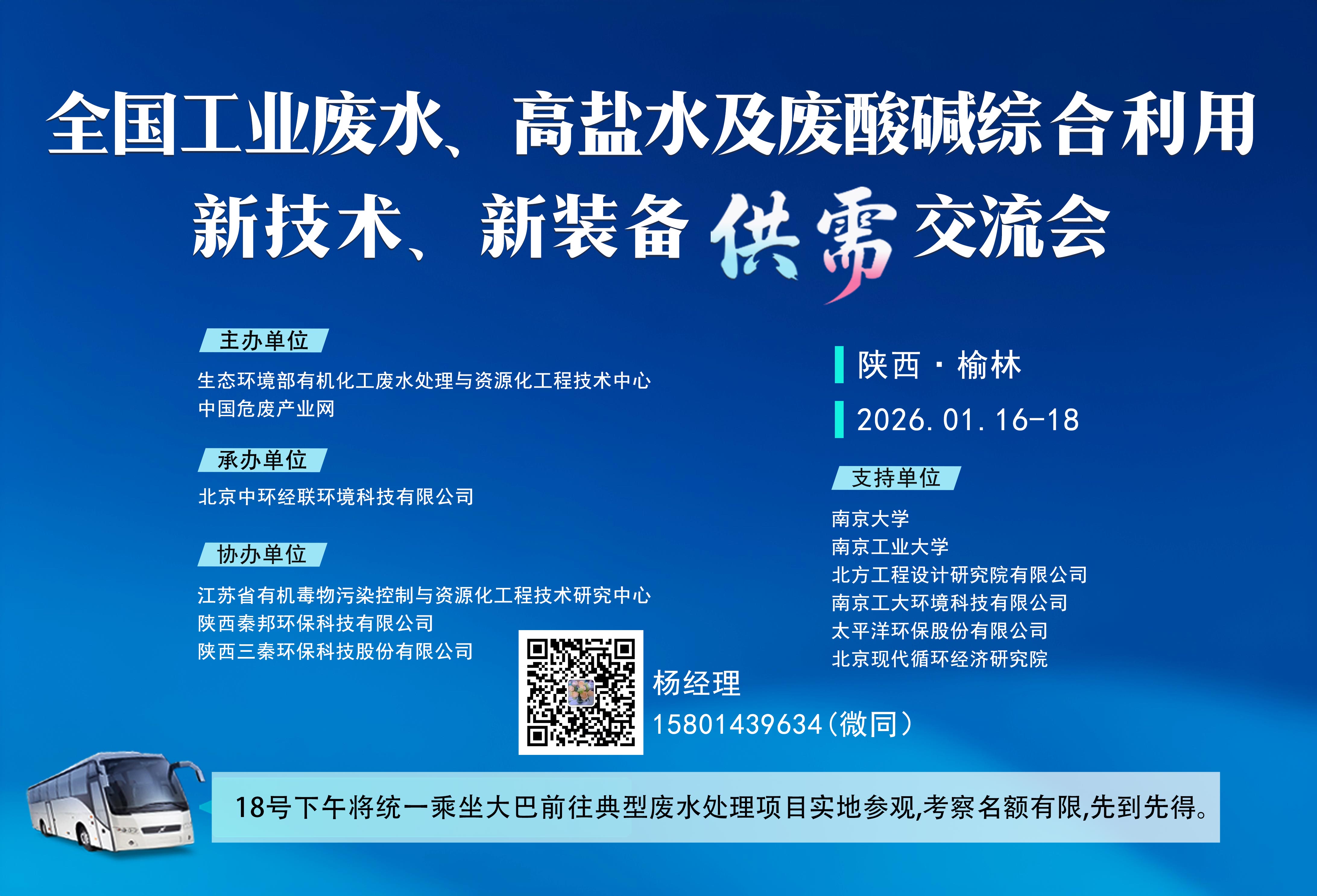 【1月·榆林】工業(yè)廢水、高鹽水及廢酸堿綜合利用新技術(shù)、新裝備供需交流會(huì) 重磅來襲!
